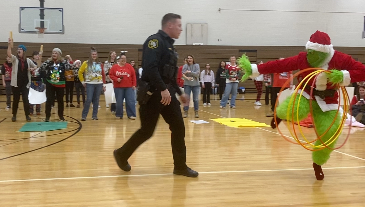 The Grinch tries to stop the fun, but HMS staff performs '12 Days of Christmas'